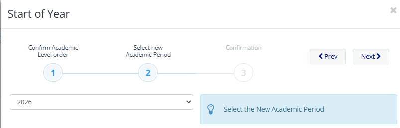 4. Check the new Academic Period presented is the correct one. eg. 2026 in Australia, or 2025/2026 in the Northern hemisphere.