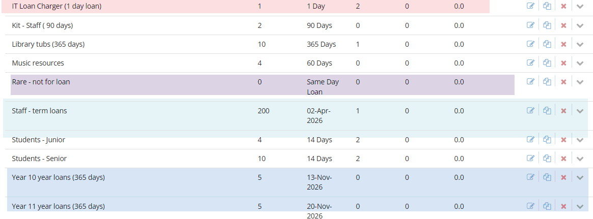 You can still create rule/s to manage year long loan periods (365 days) of library resources, textbook hire, class sets, teacher reference, from spilling into the next year.